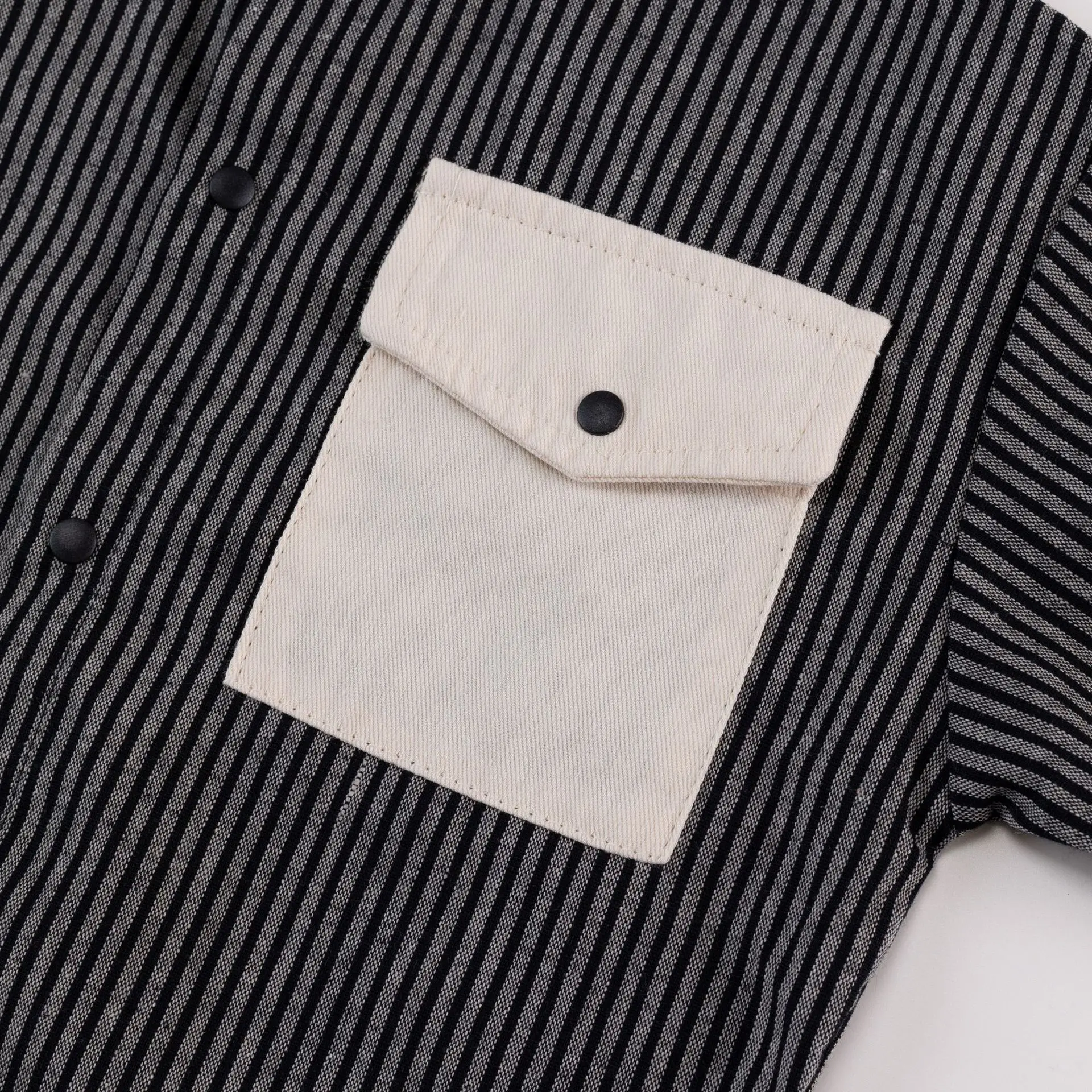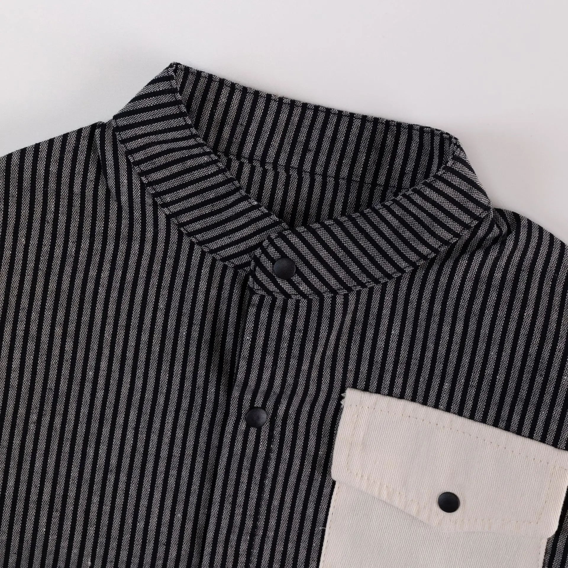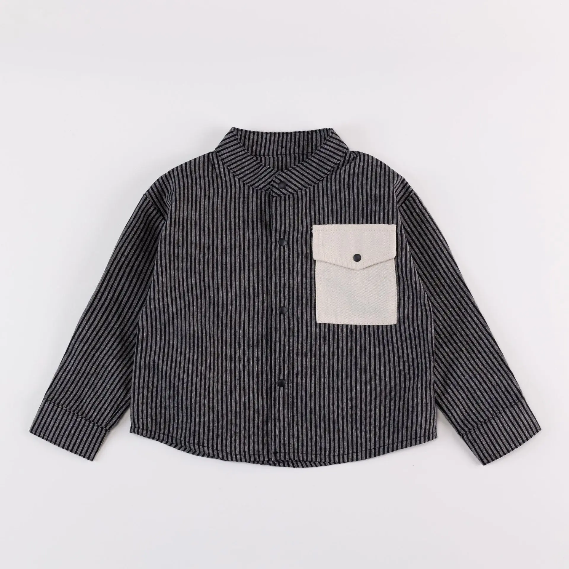 Pocket Striped Stand Up Collar Shirt
