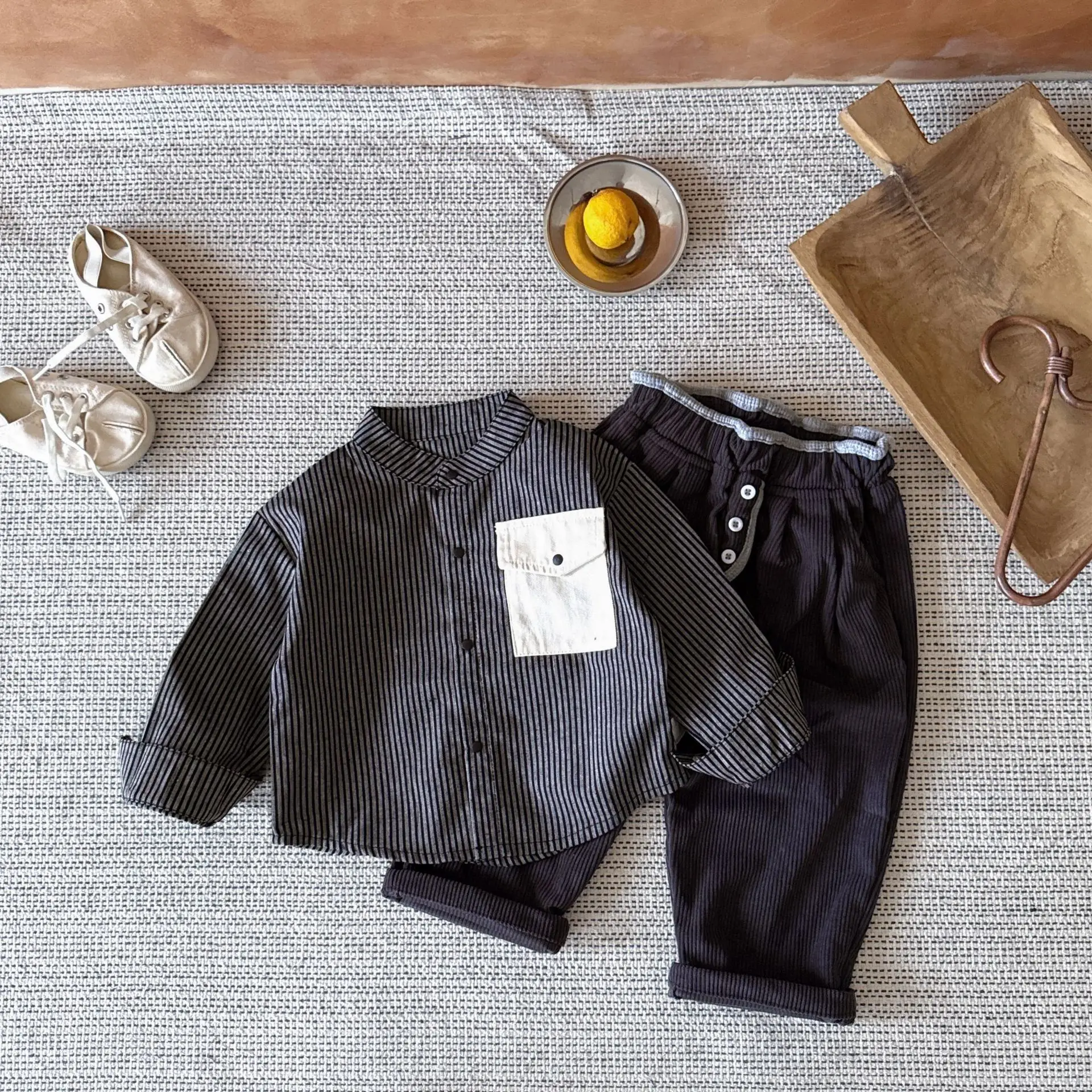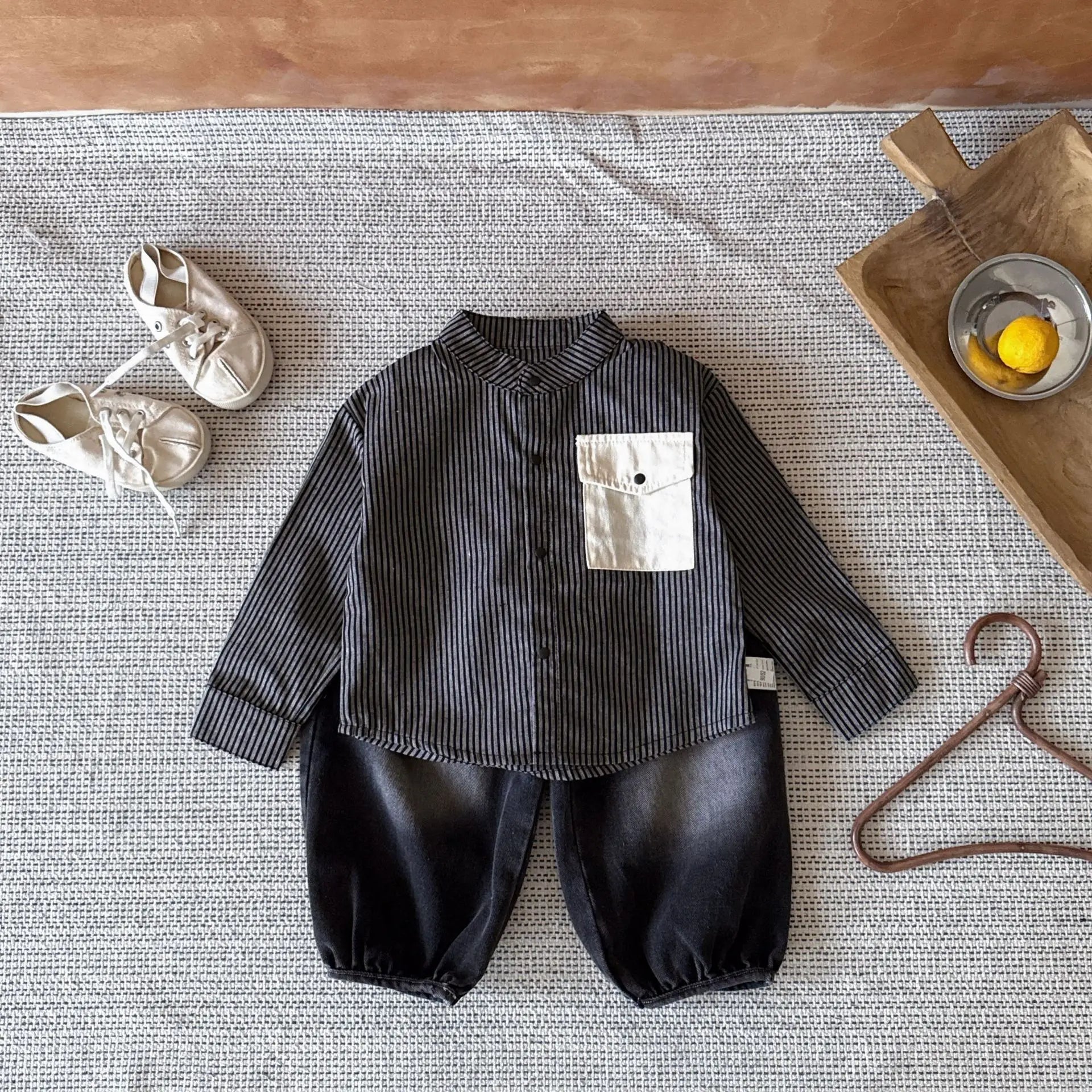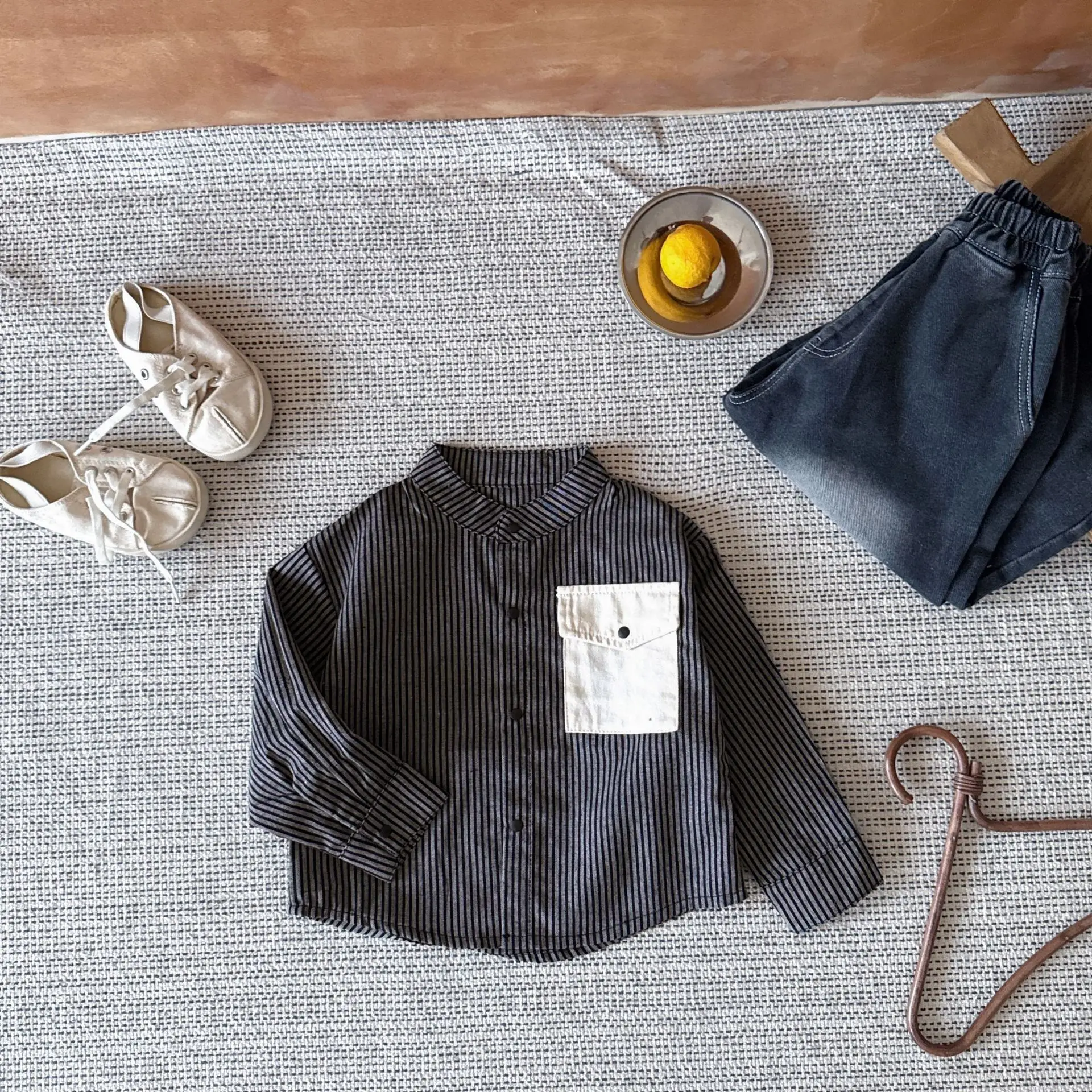 Pocket Striped Stand Up Collar Shirt