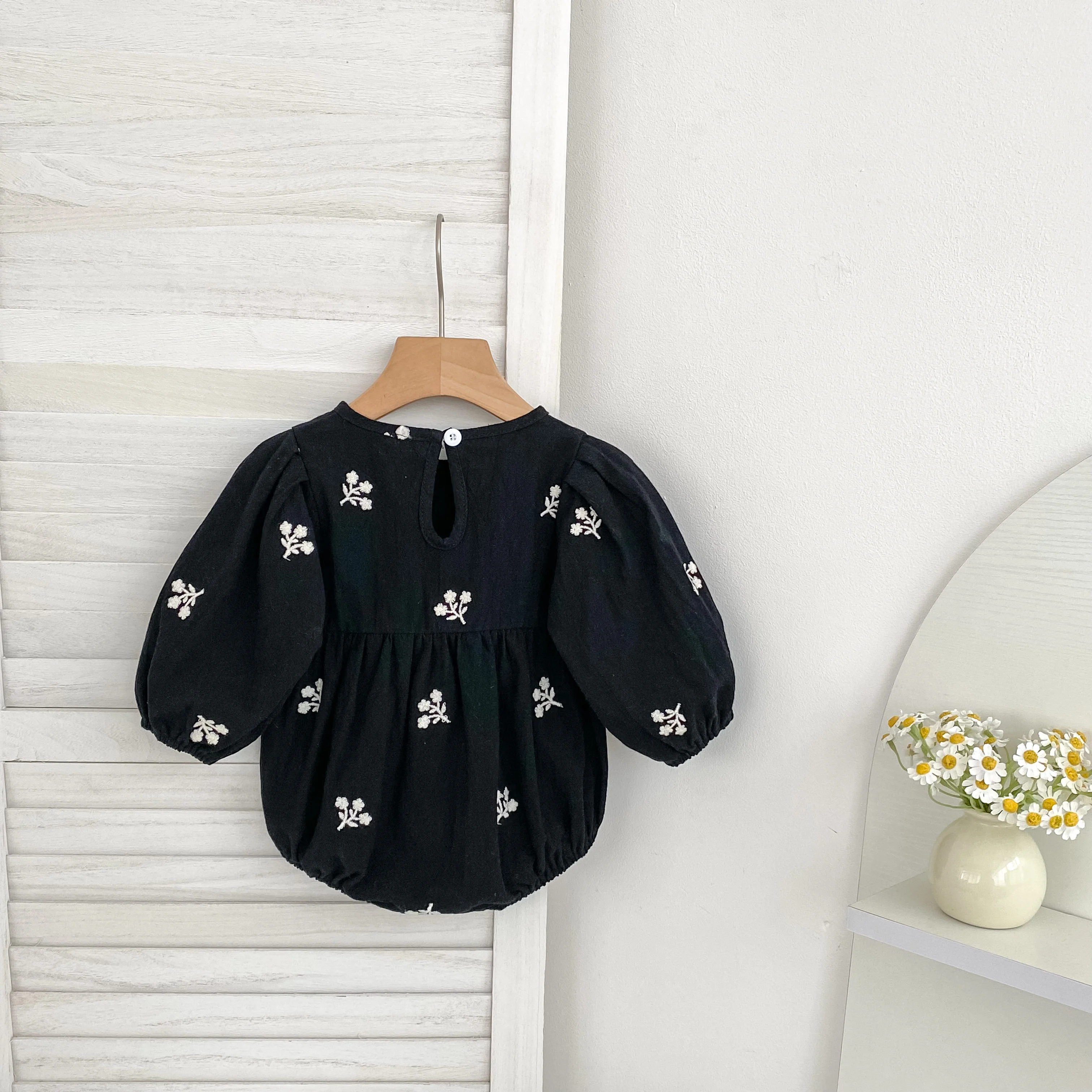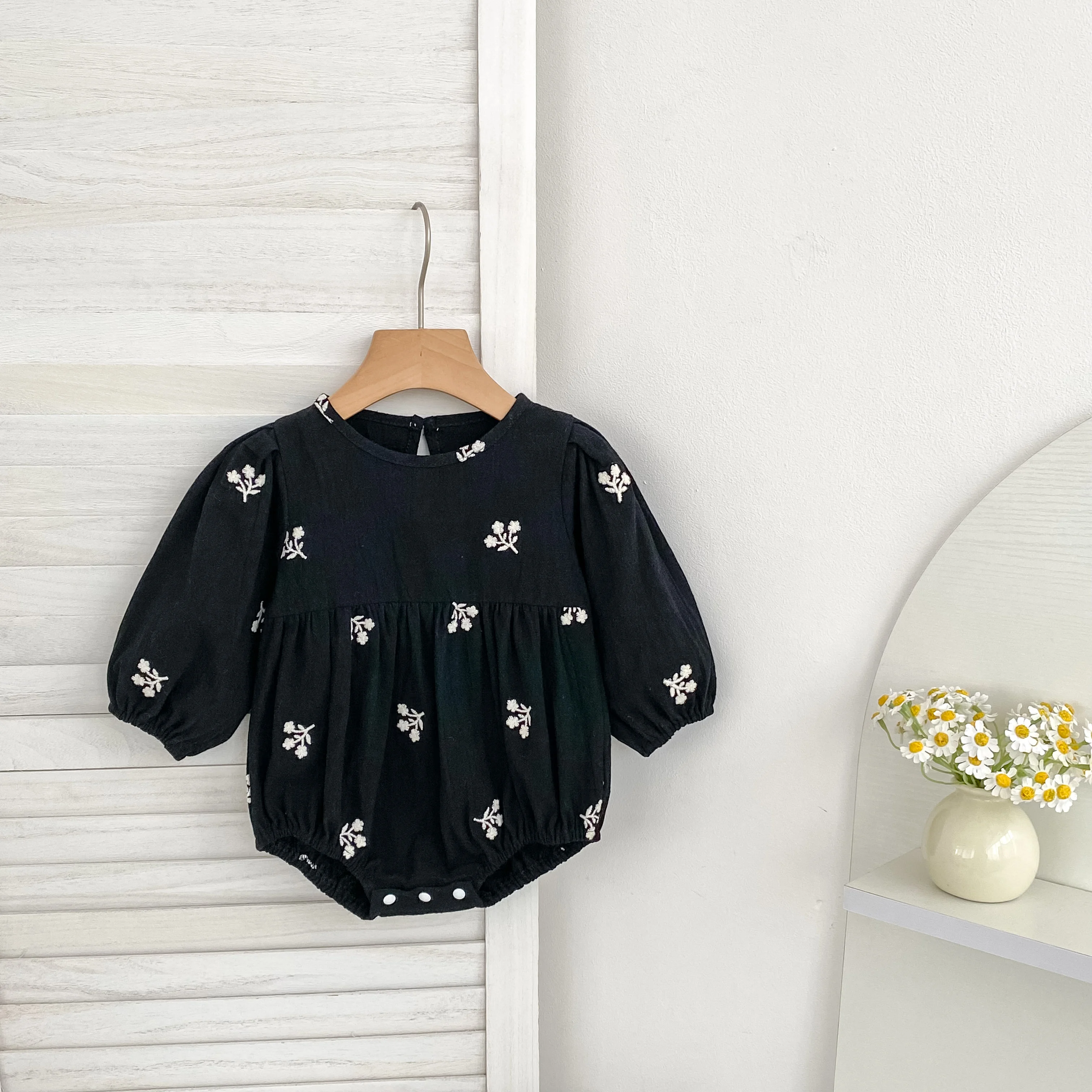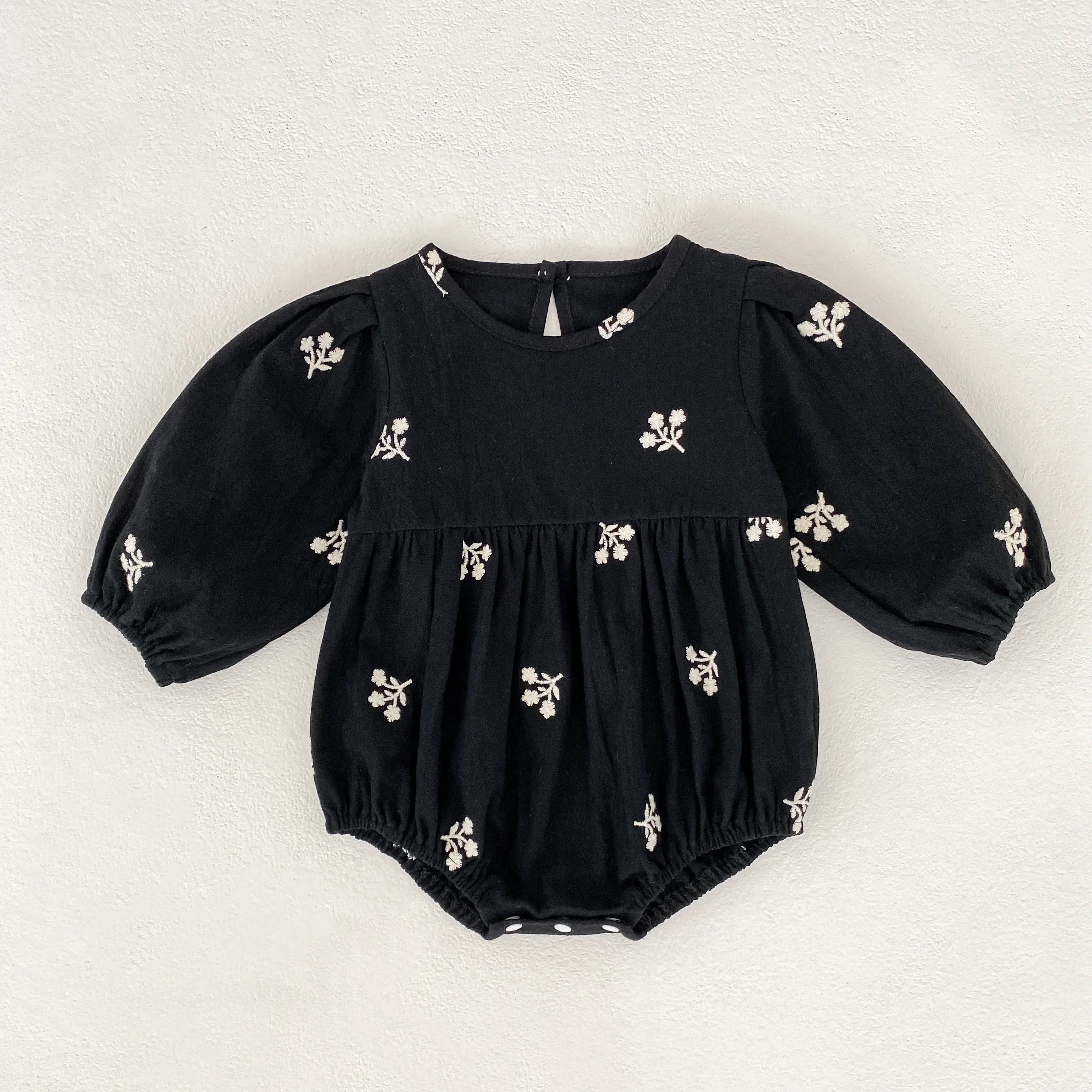 Floral Leaf Embroidery Romper