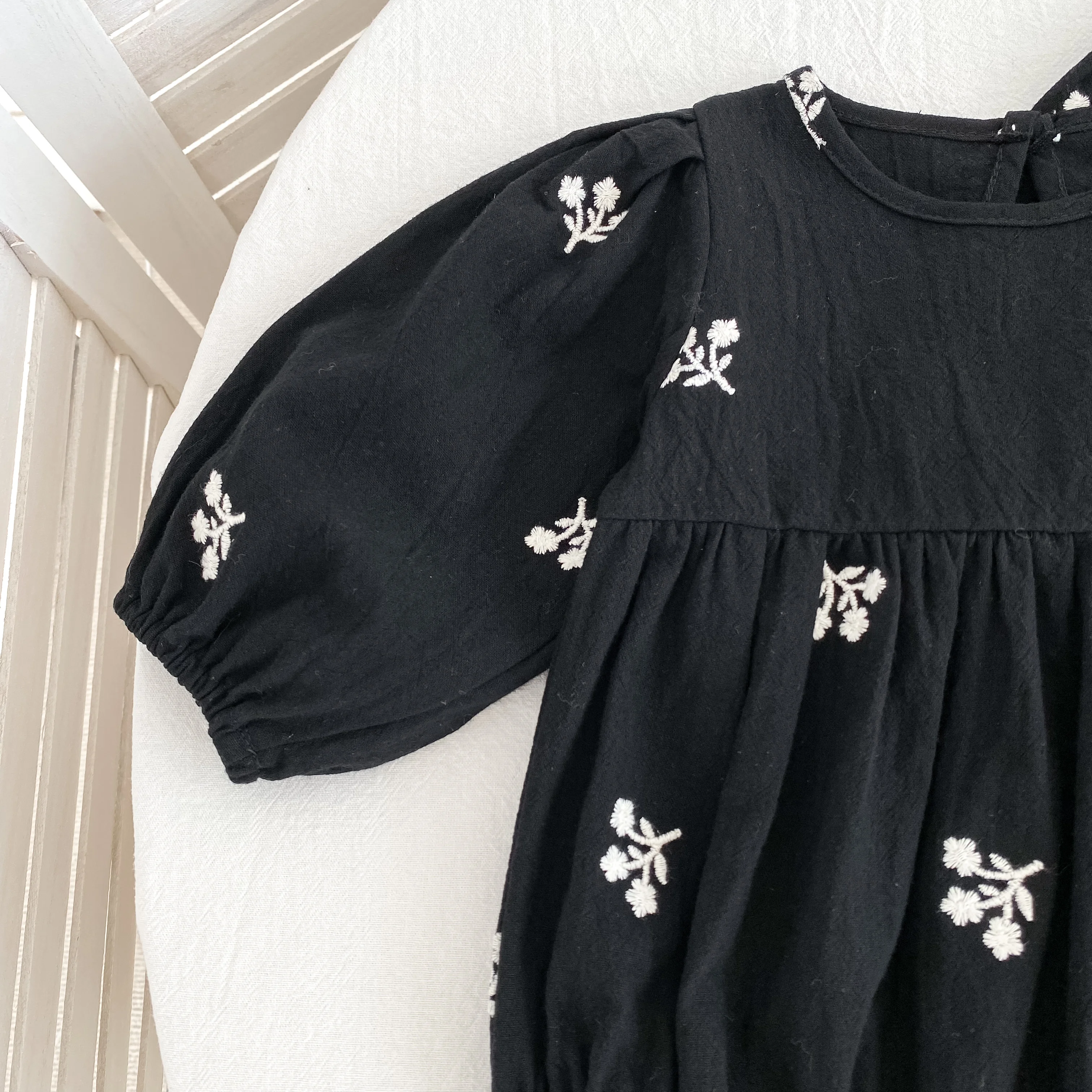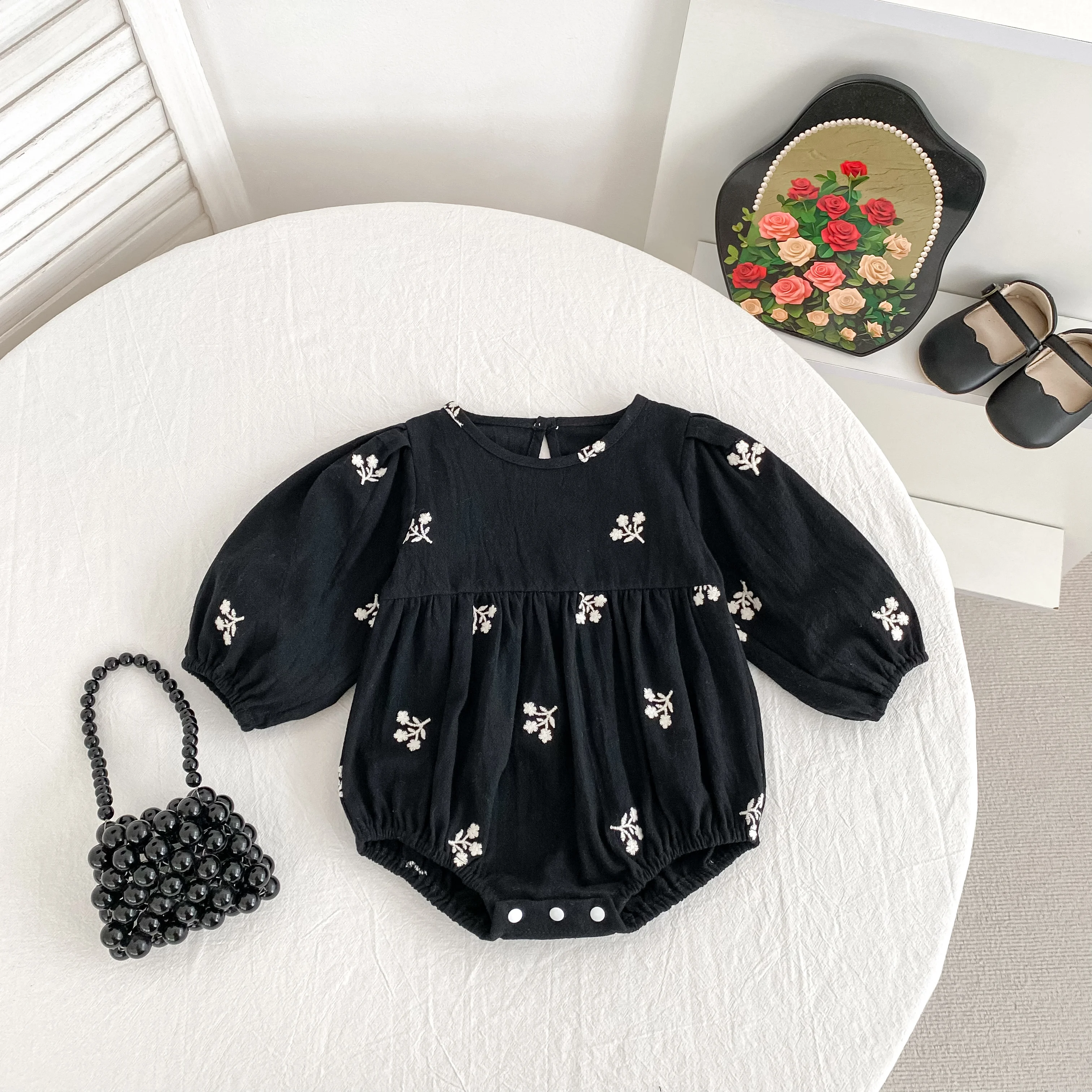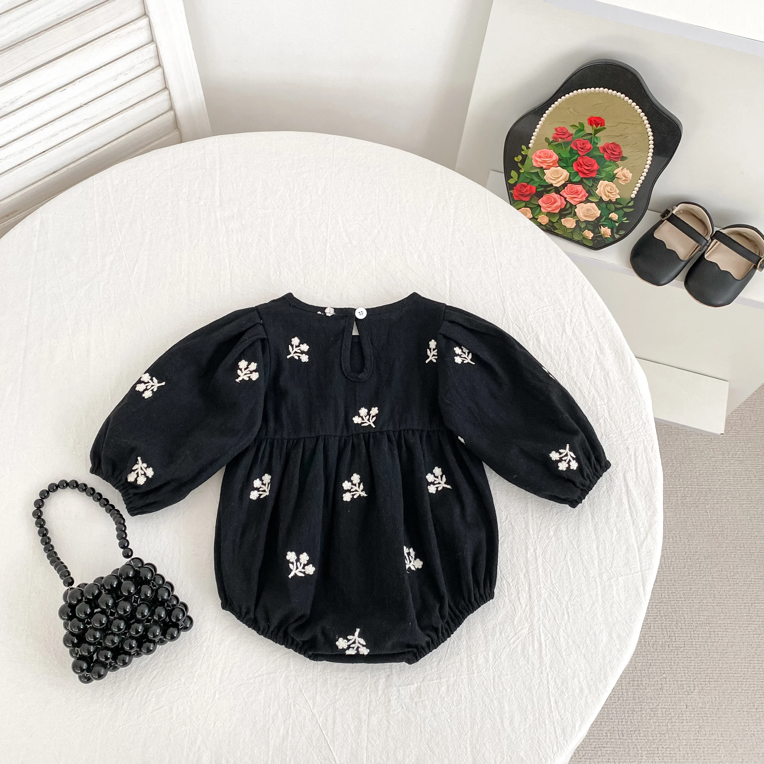 Floral Leaf Embroidery Romper