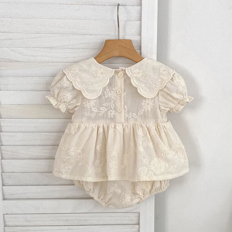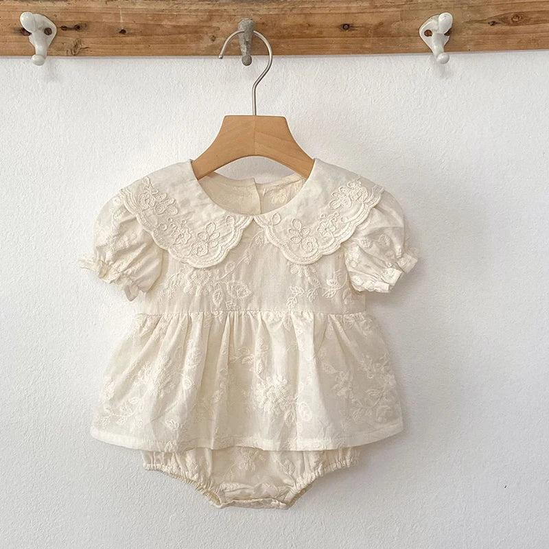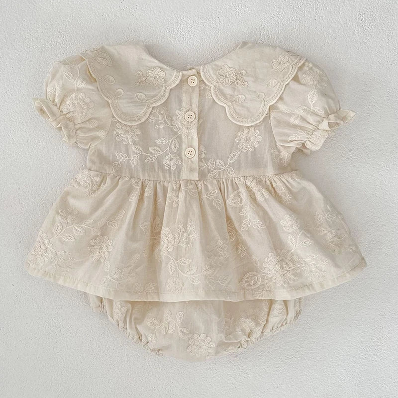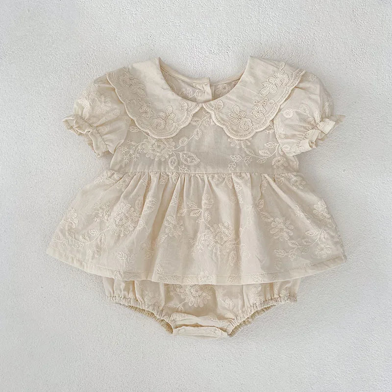 Floral Embroidery Peter Pan Collar Romper Dress