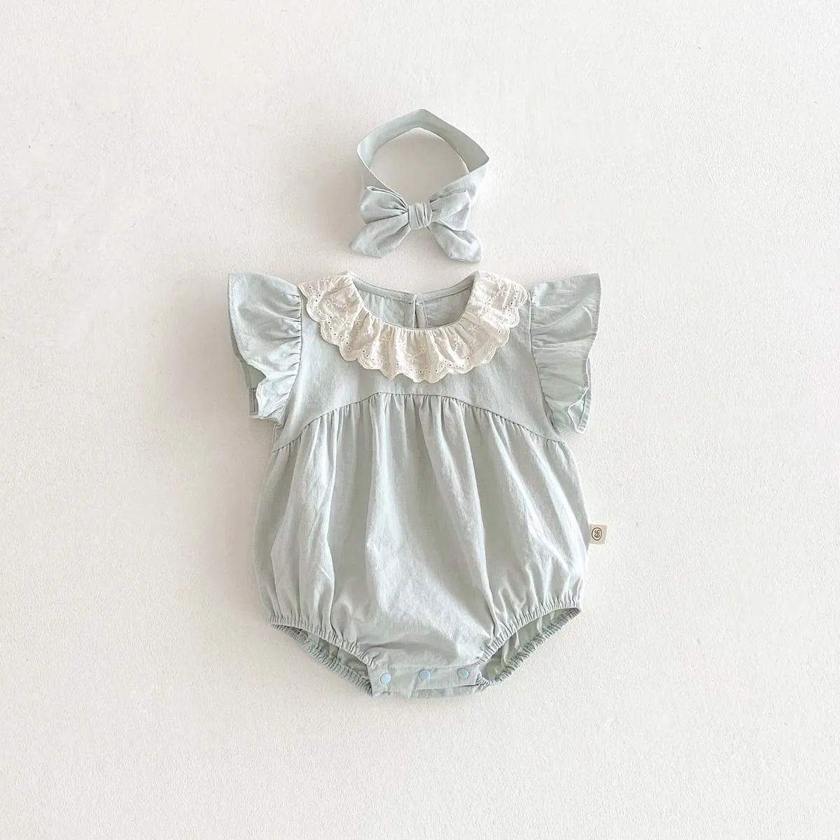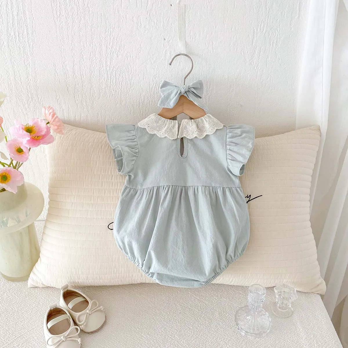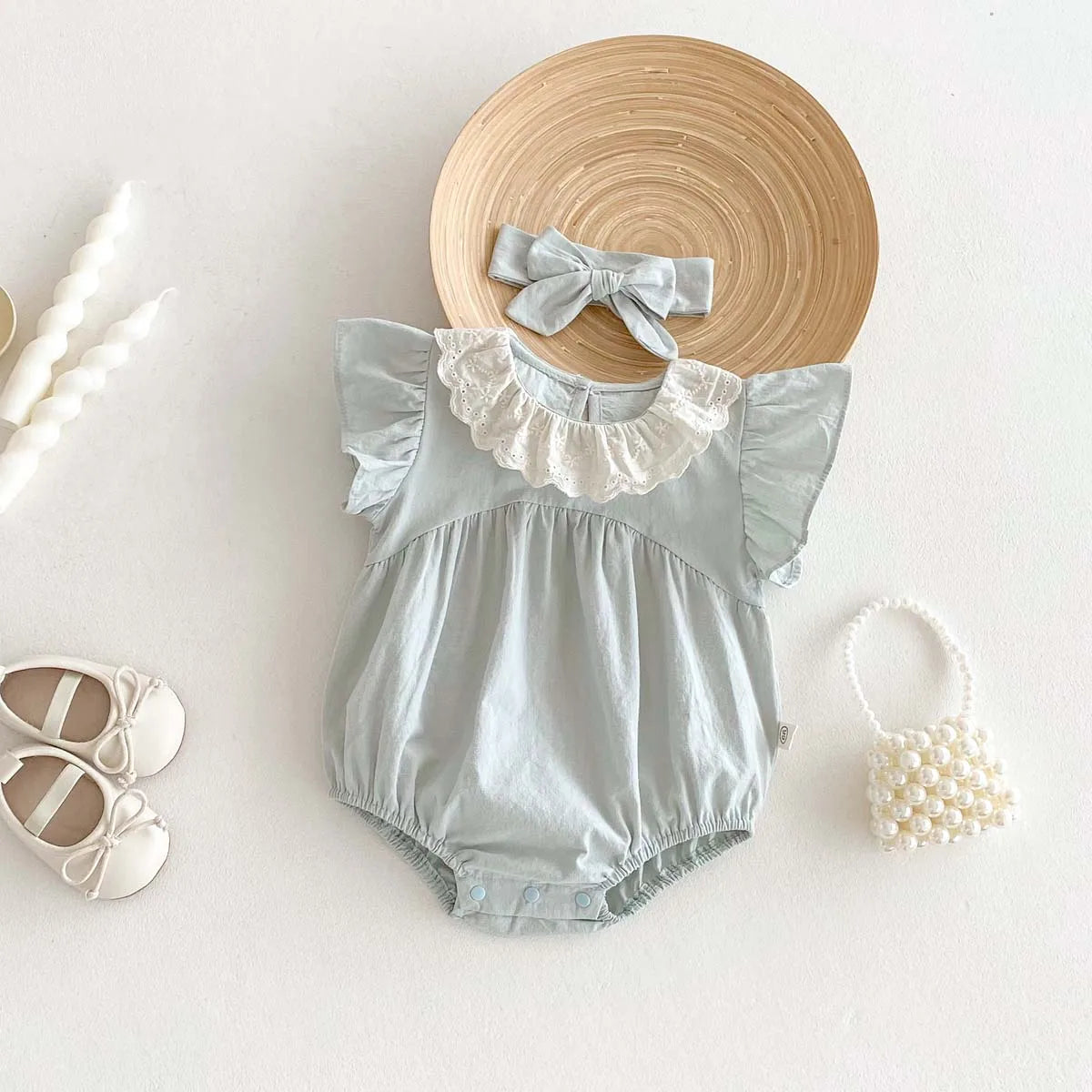 Sky Blue Laced Collar Romper and Headband
