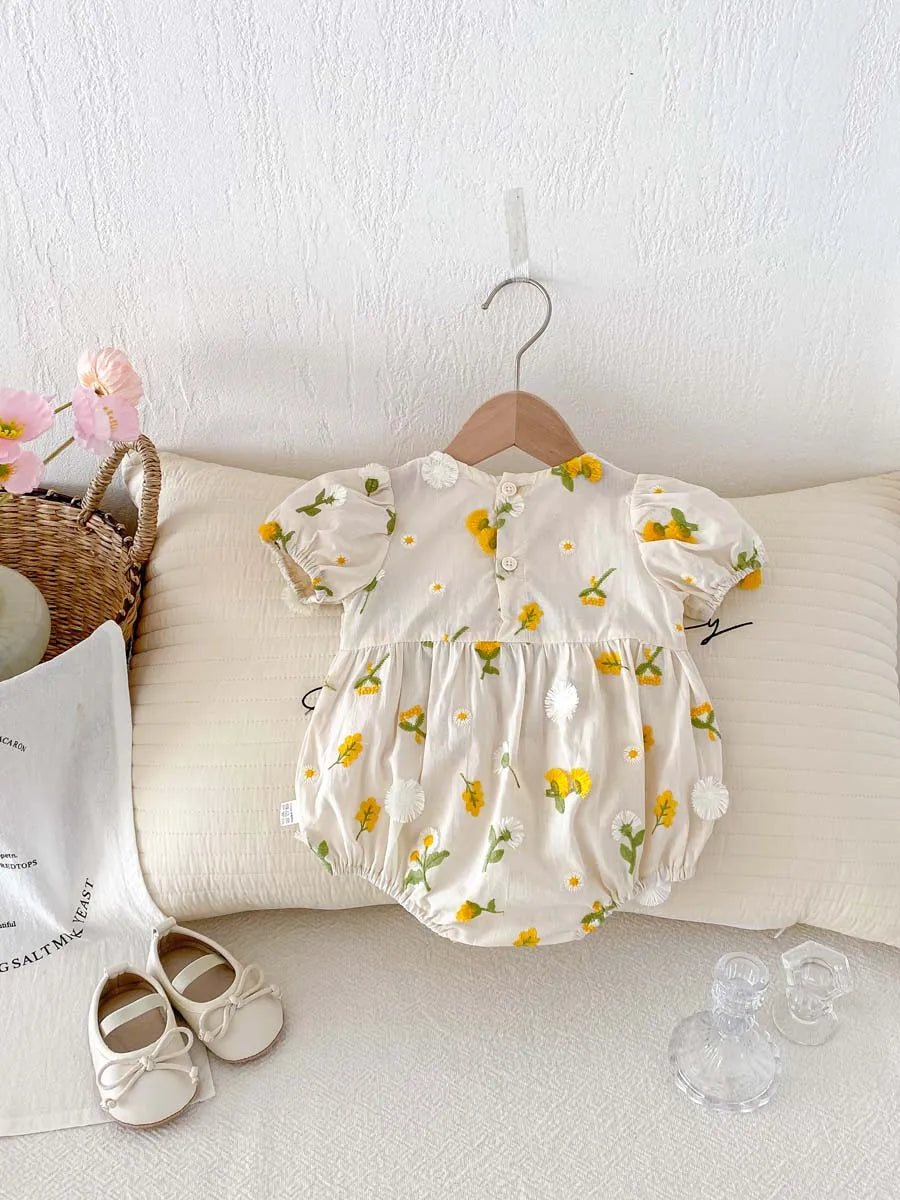 Yellow Small Floral Embroidery Romper